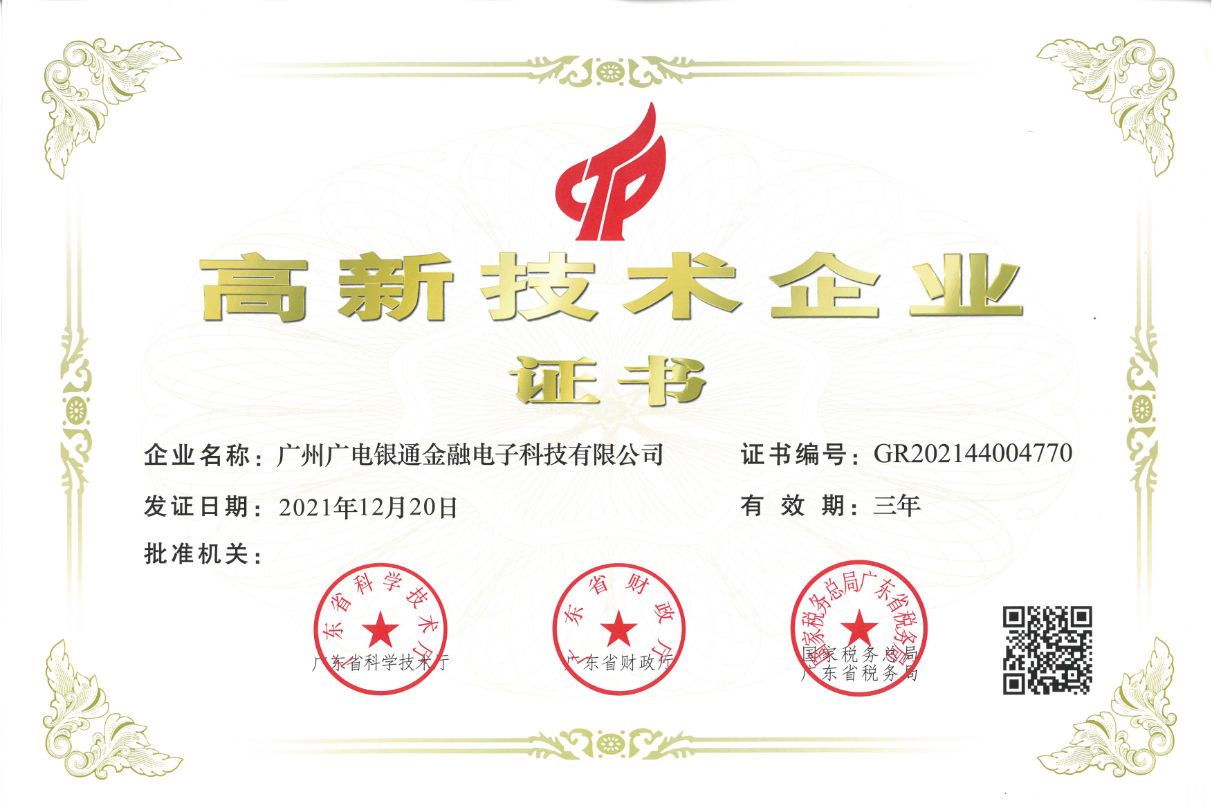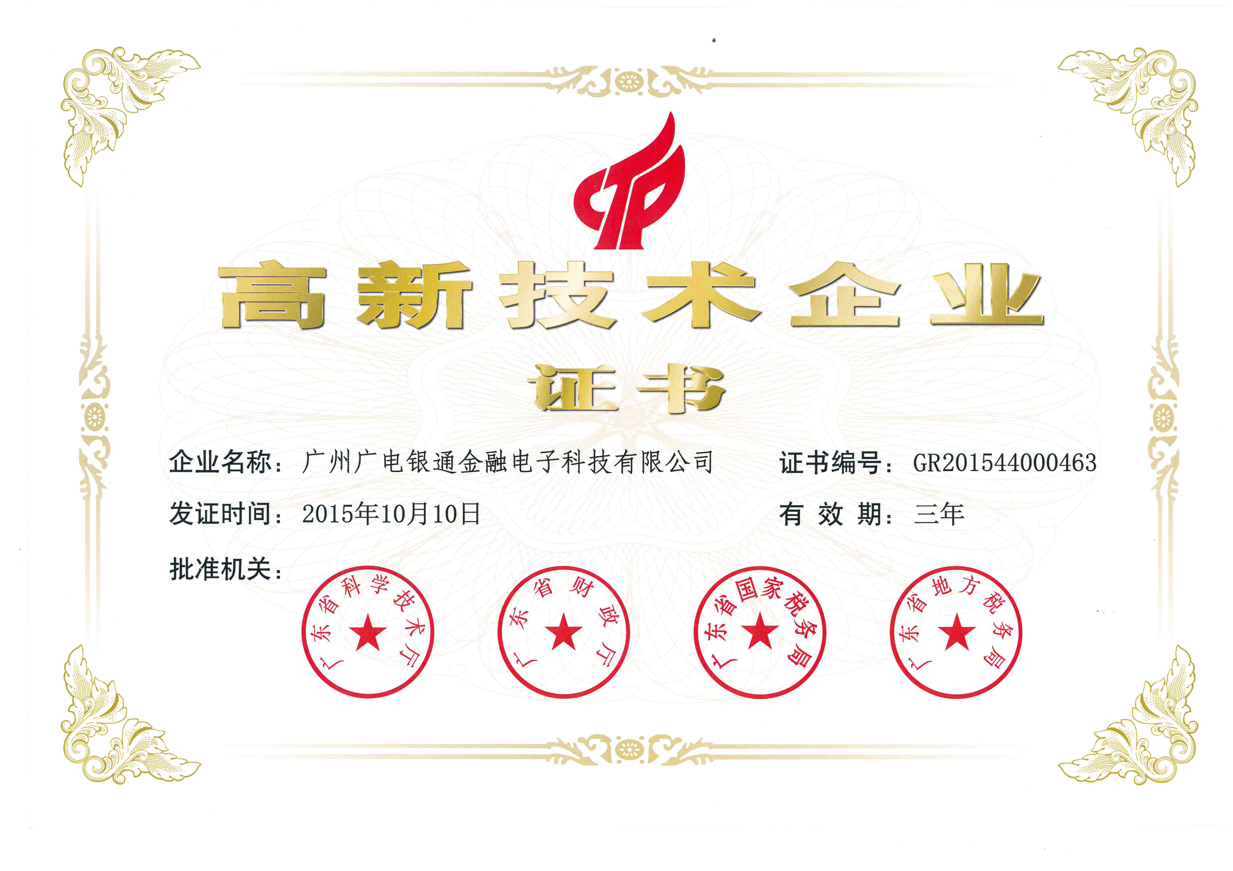 廣州廣電銀通高新技術(shù)企業(yè)證書