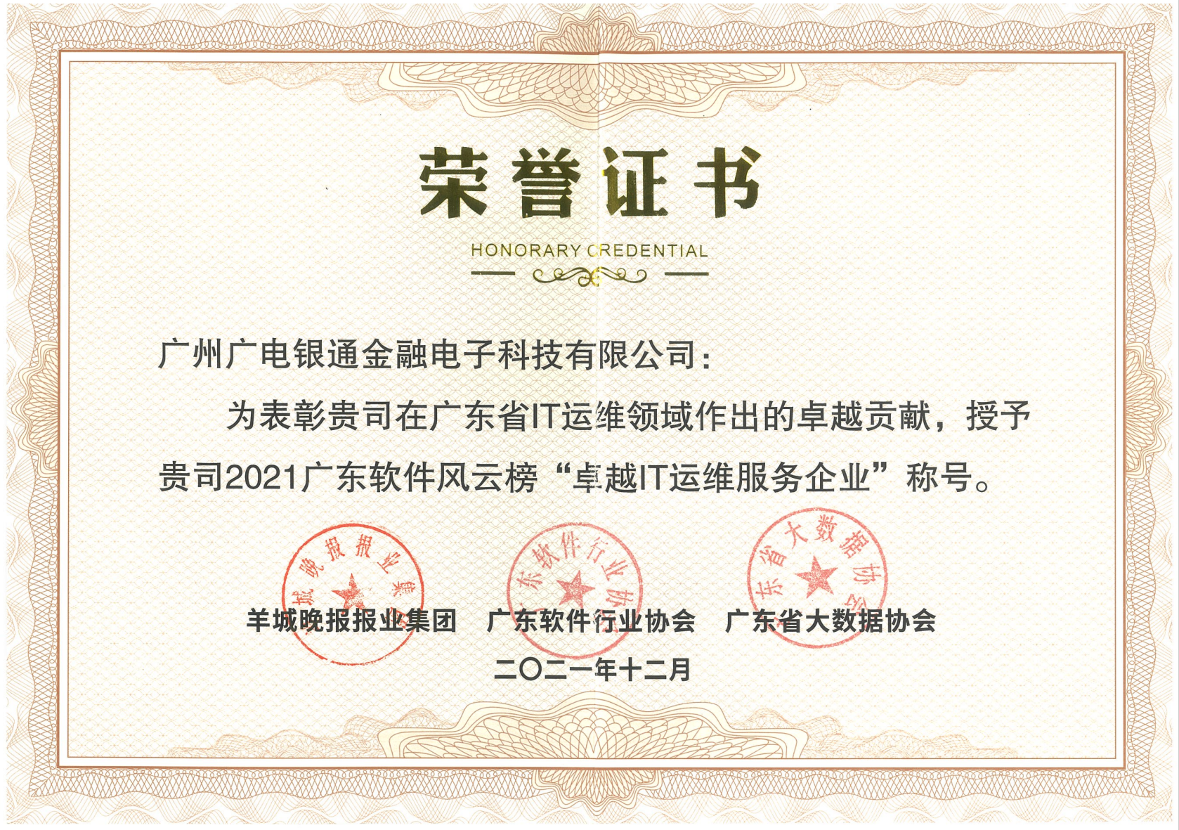 2021廣東軟件風(fēng)云榜“卓越IT運(yùn)維服務(wù)企業(yè)”稱號(hào)