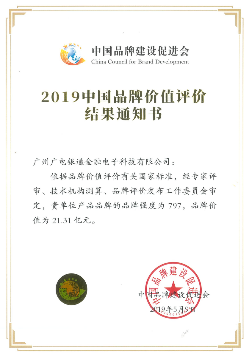 2019中國(guó)品牌價(jià)值評(píng)價(jià)結(jié)果通知書