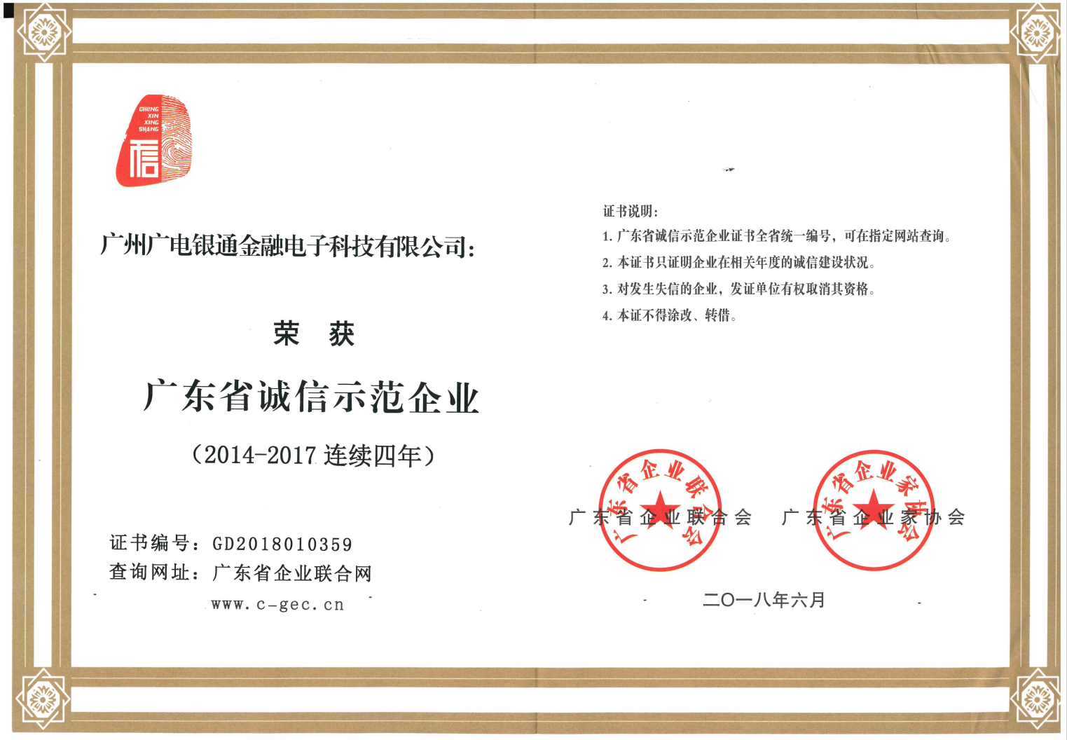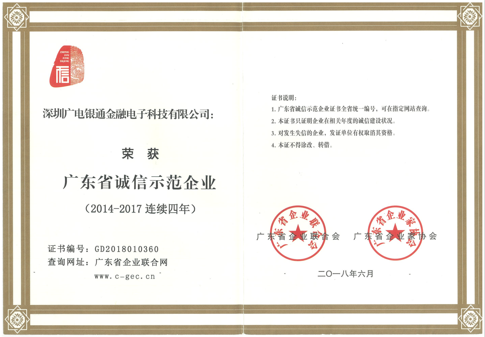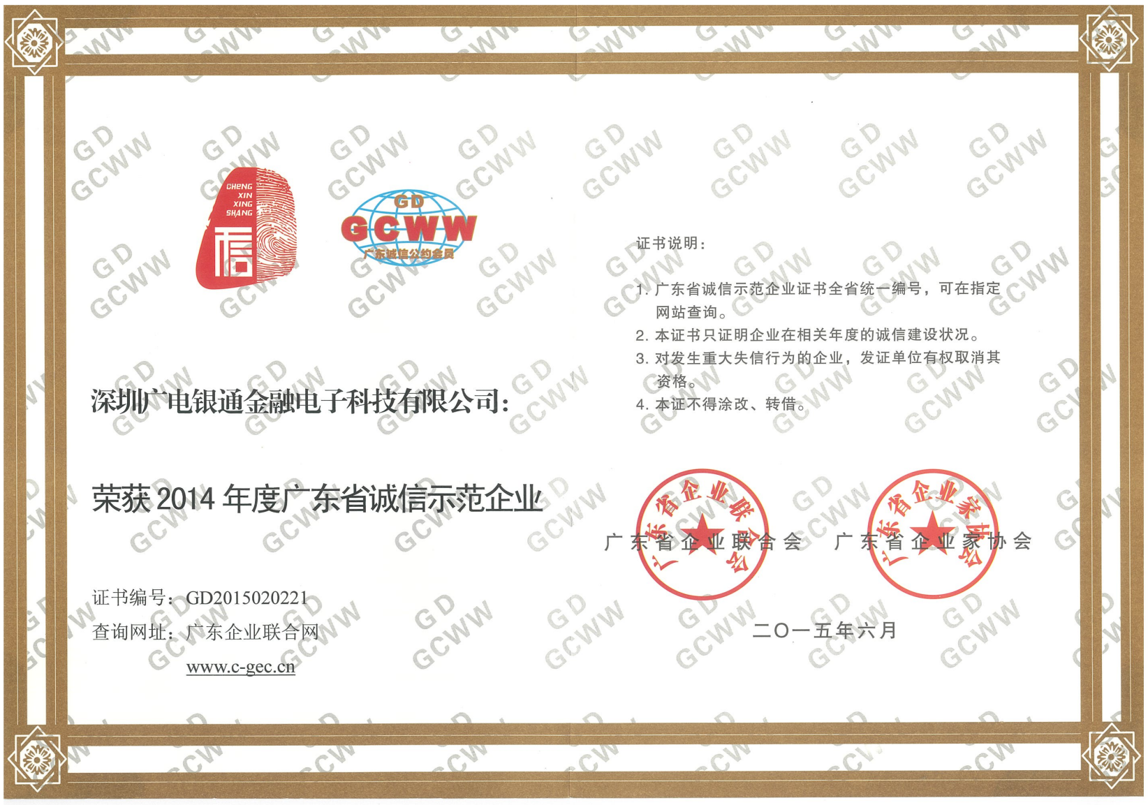 2014廣東省誠(chéng)信示范企業(yè)(深圳銀通)