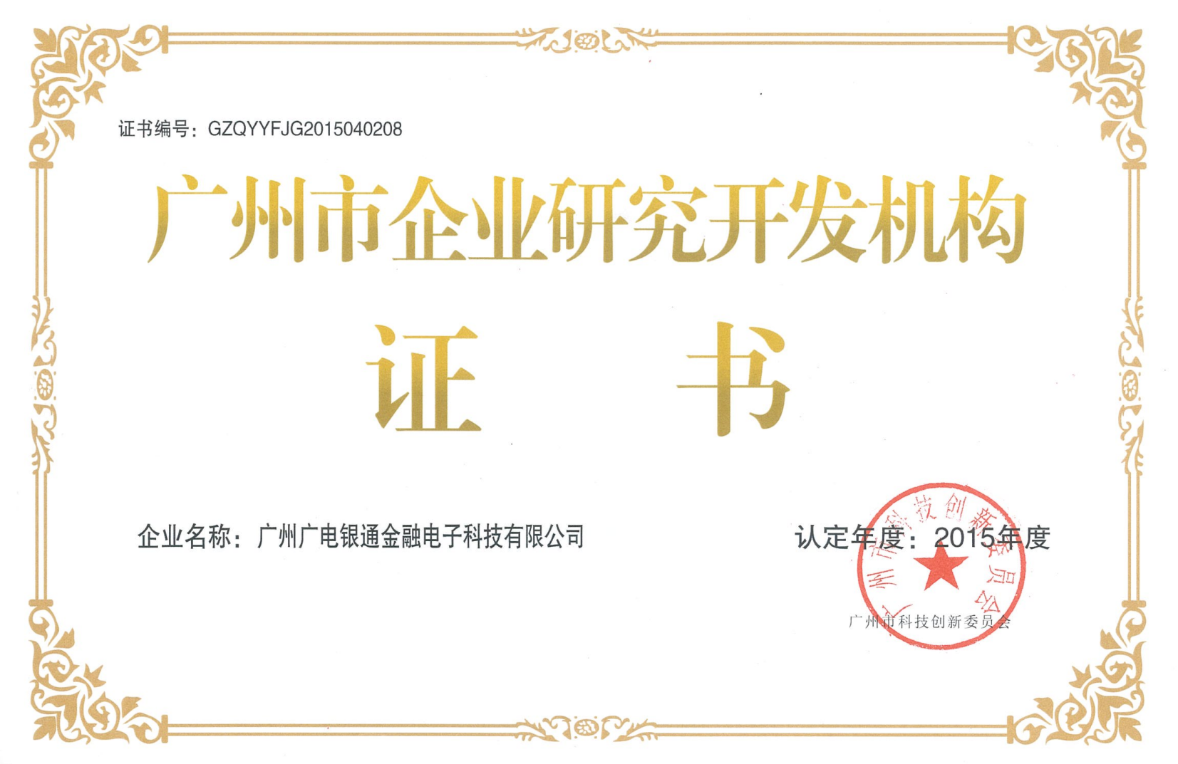 2015廣州市企業(yè)研究開發(fā)機(jī)構(gòu)證書