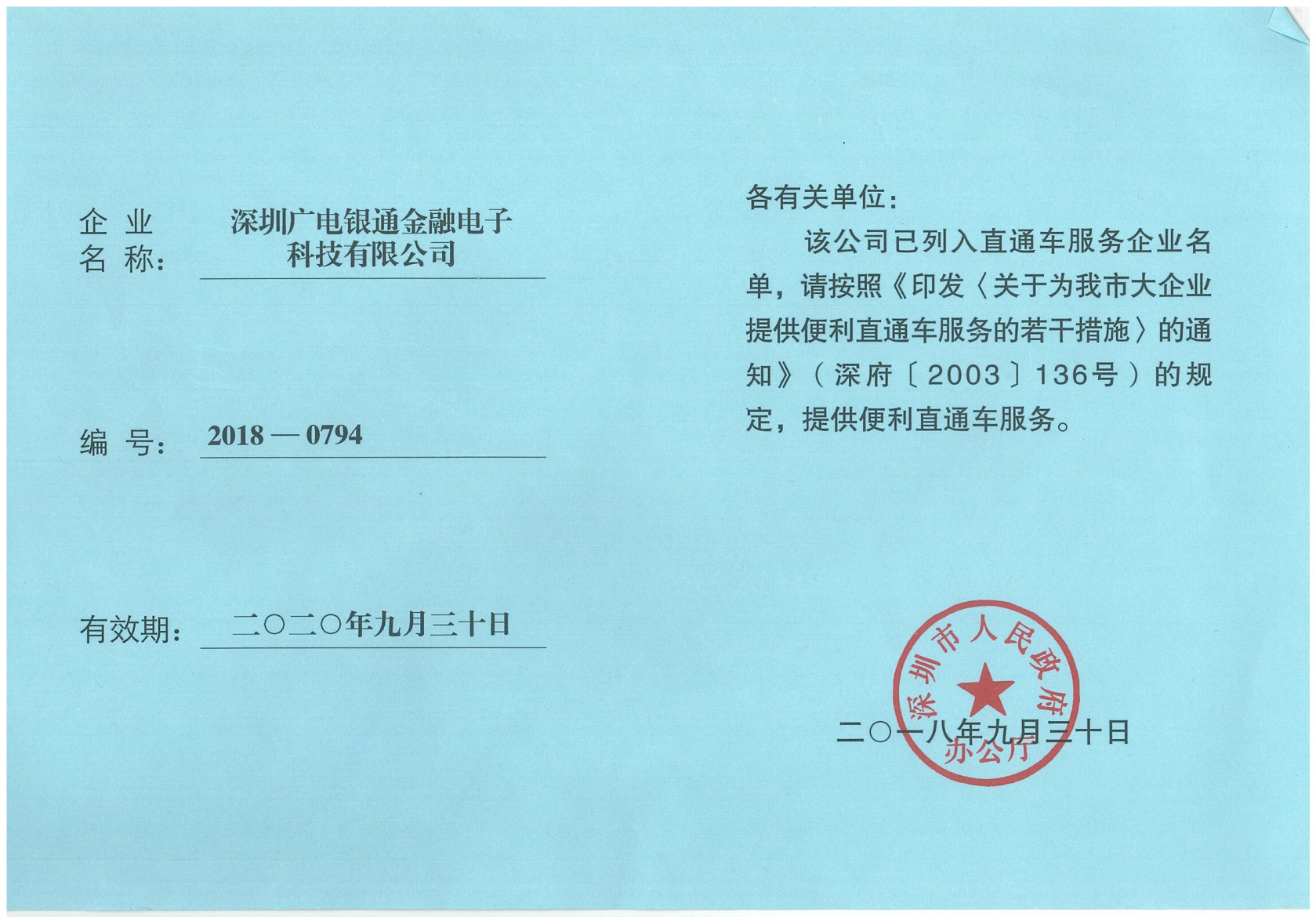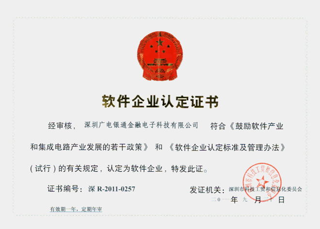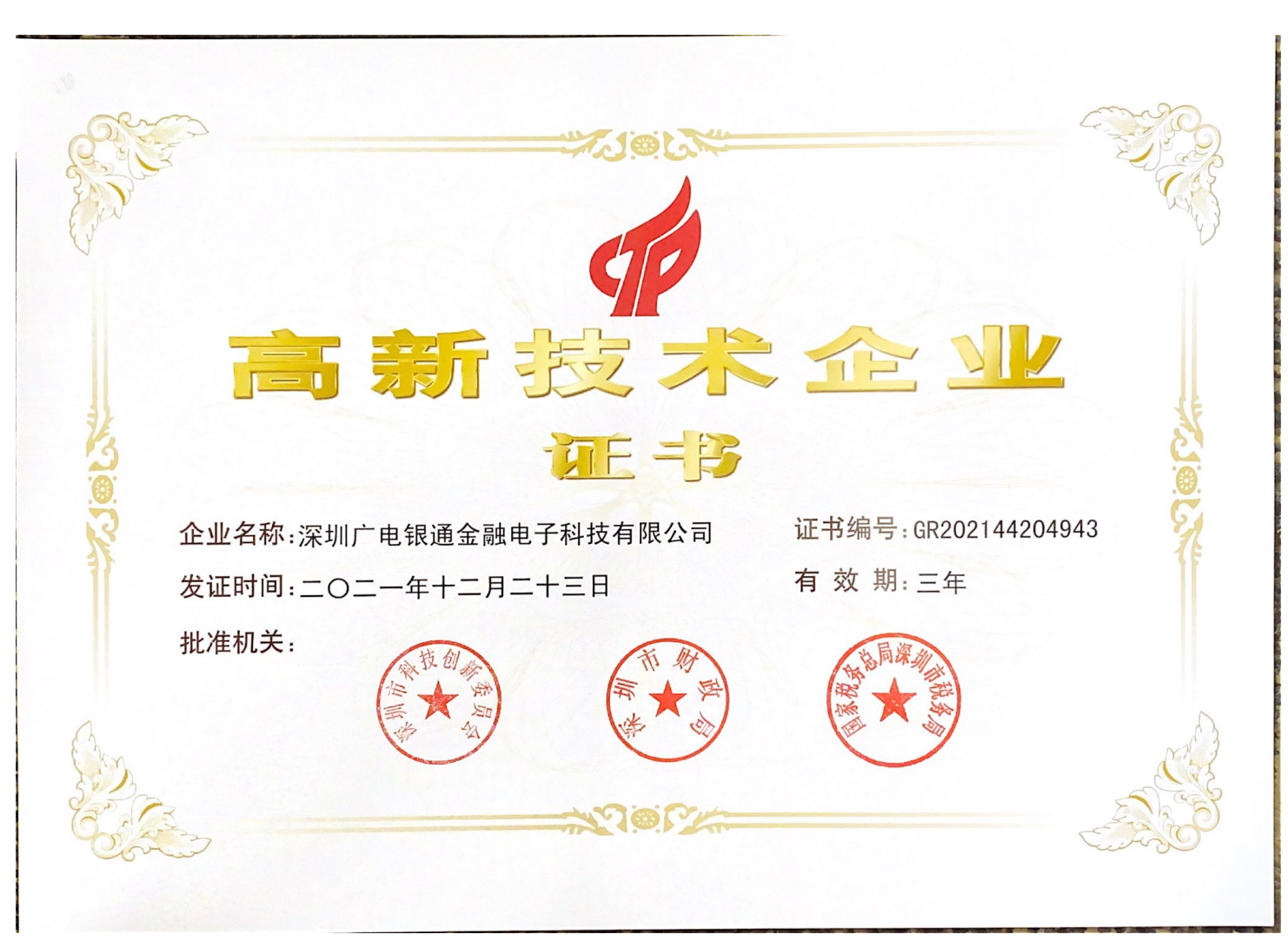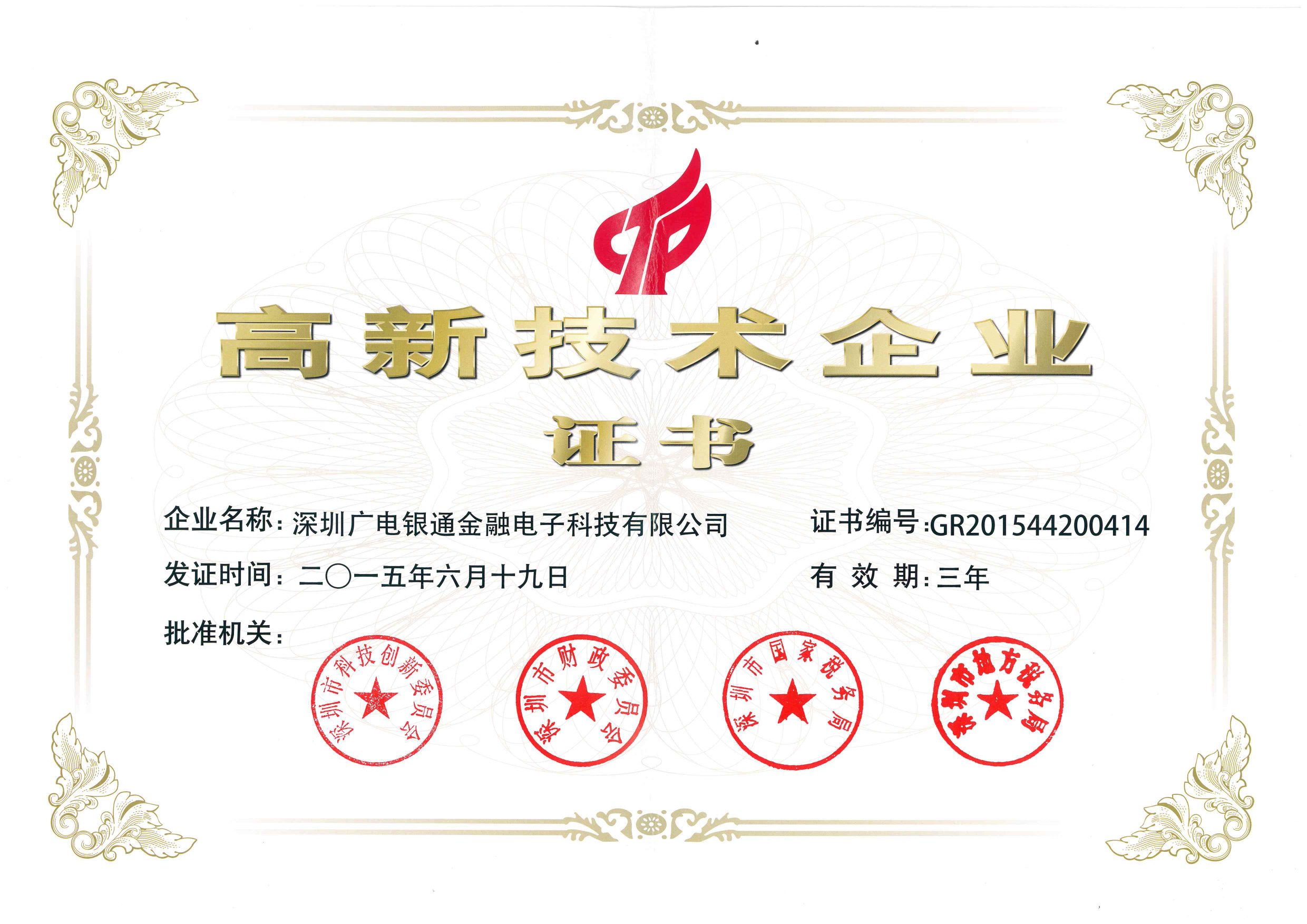 深圳廣電銀通高新技術(shù)企業(yè)證書