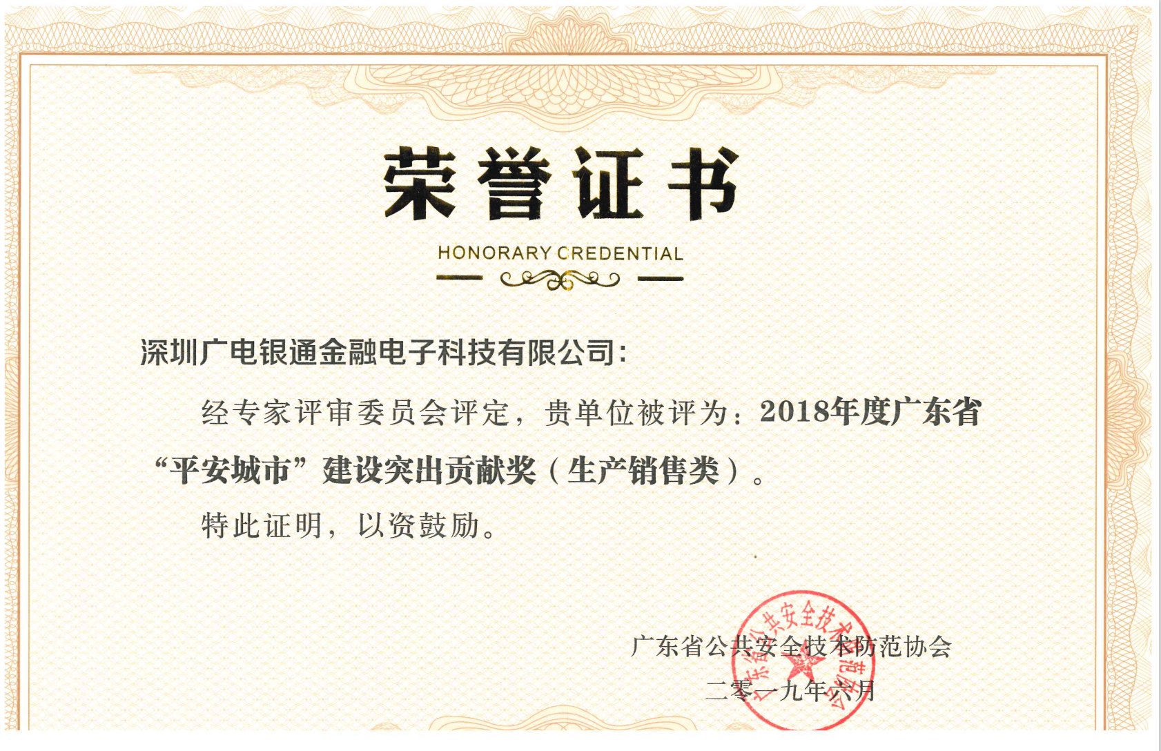 2018年度廣東省“平安城市”建設(shè)突出貢獻(xiàn)獎(jiǎng)