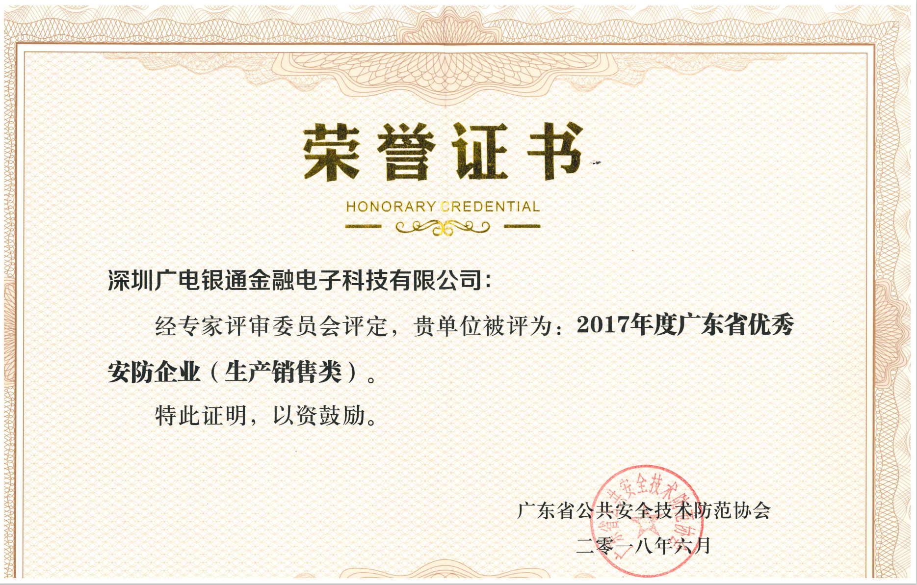 2017年廣東省優(yōu)秀安防企業(yè)(生產(chǎn)銷售類)