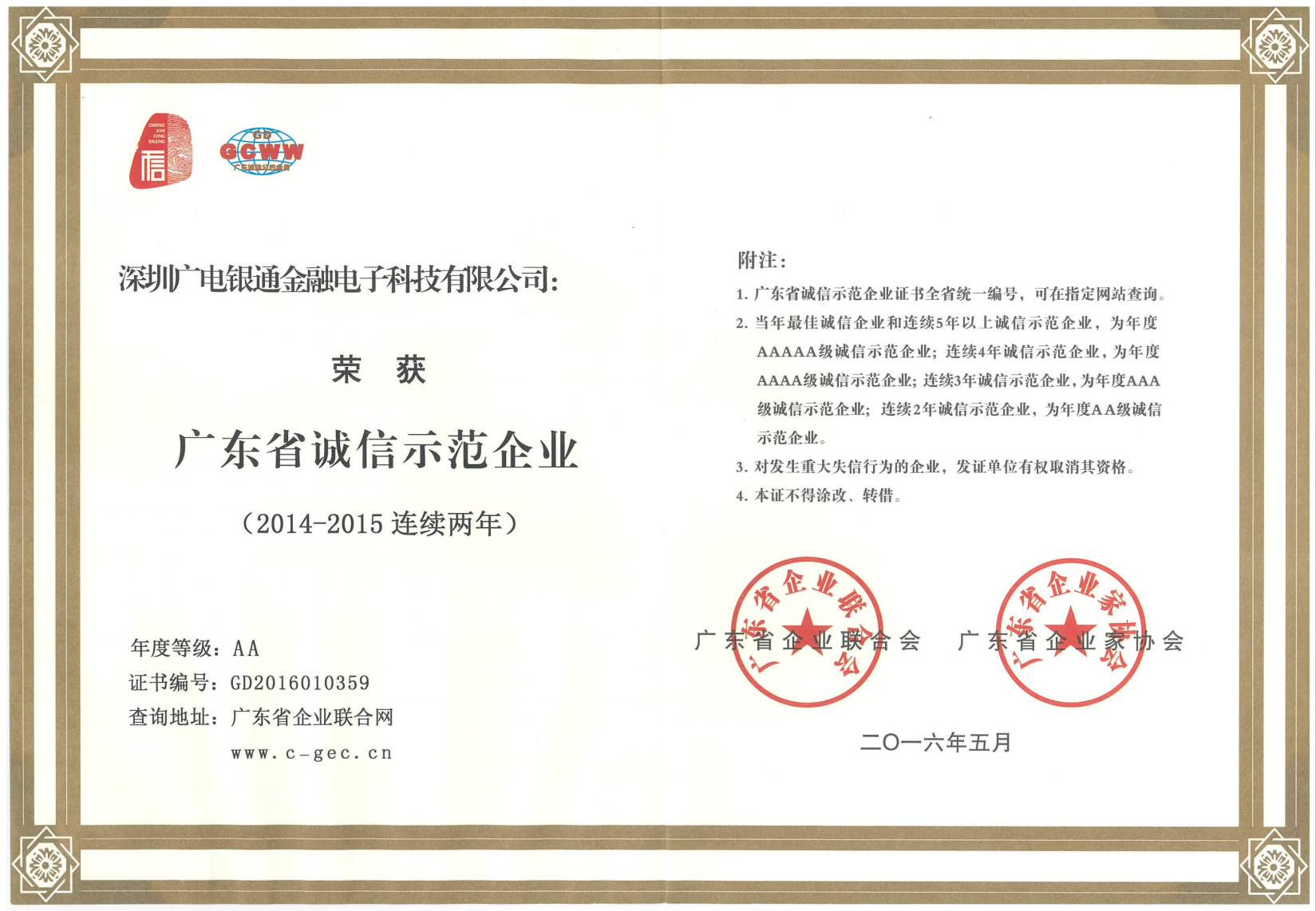 2015廣東省誠(chéng)信示范企業(yè)(深圳銀通)