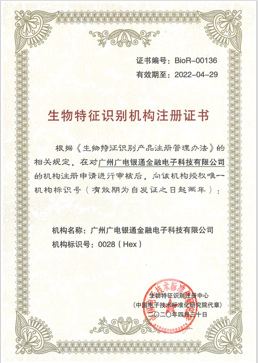 生物特征識(shí)別機(jī)構(gòu)注冊(cè)證書