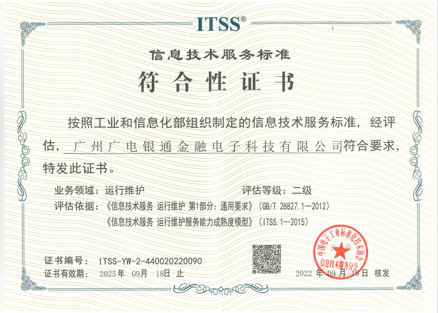 ITSS信息技術(shù)服務(wù)標(biāo)準(zhǔn)符合性證書二級(jí)