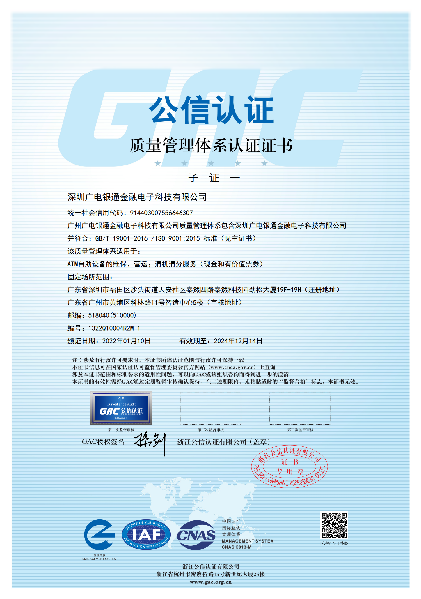 深圳銀通質(zhì)量管理體系認(rèn)證證書2023