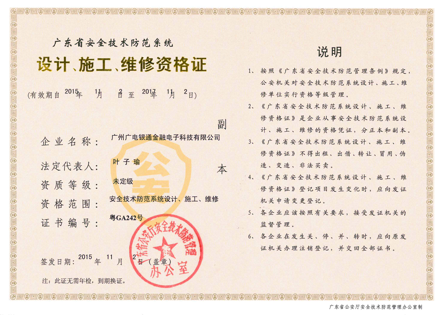 技術(shù)防范系統(tǒng)設(shè)計(jì)、施工、維修資格證二級(jí)-深圳銀通