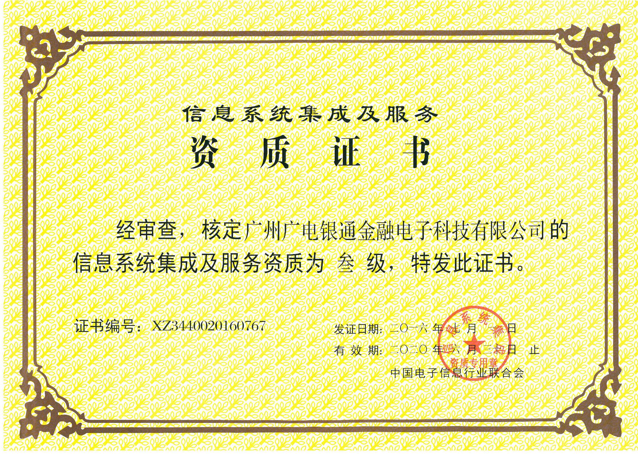 信息系統(tǒng)集成及服務(wù)資質(zhì)證書