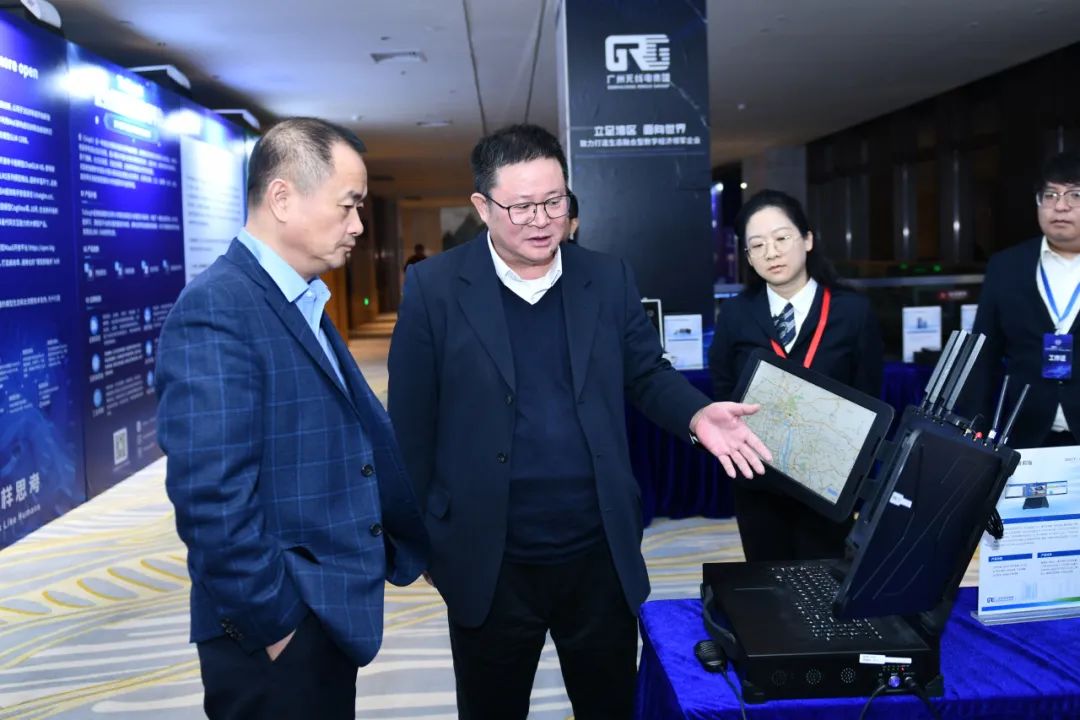 梅宏院士(左)蒞臨廣州無線電集團展位參觀