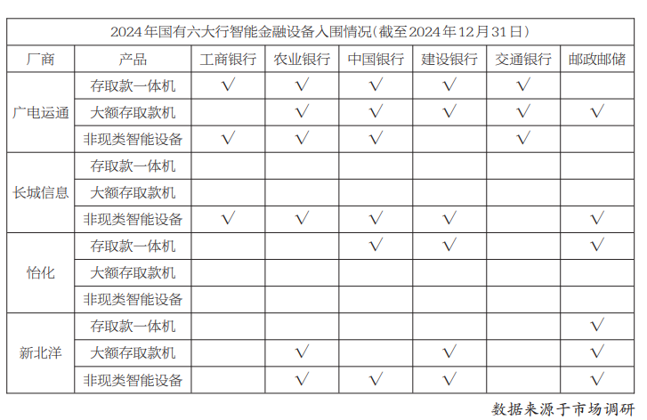 根據(jù)國(guó)家金融監(jiān)督管理總局發(fā)布的數(shù)據(jù),截至2024年年底,國(guó)內(nèi)銀行機(jī)構(gòu)線下網(wǎng)點(diǎn)退出數(shù)量近3500家,新增網(wǎng)點(diǎn)數(shù)量超2000家,網(wǎng)點(diǎn)總量保持在22萬(wàn)家。隨著銀行網(wǎng)點(diǎn)對(duì)城市新區(qū)和重點(diǎn)縣域的廣泛覆蓋,同時(shí)從標(biāo)準(zhǔn)化向個(gè)性化、輕型化發(fā)展,新增網(wǎng)點(diǎn)保持穩(wěn)定的增長(zhǎng)態(tài)勢(shì)。值得注意的是,農(nóng)業(yè)銀行、中信銀行、招商銀行等銀行網(wǎng)點(diǎn)總量實(shí)現(xiàn)了凈增長(zhǎng)。城商行網(wǎng)點(diǎn)總量更是連續(xù)多年實(shí)現(xiàn)逆勢(shì)增長(zhǎng)。盡管線上渠道辦理的趨勢(shì)日益增強(qiáng),線下網(wǎng)點(diǎn)在服務(wù)特定人群、非標(biāo)準(zhǔn)化業(yè)務(wù)辦理等方面仍然無(wú)可替代。特別是對(duì)于線上服務(wù)能力相對(duì)較弱的銀行來(lái)說,廣泛分布的網(wǎng)點(diǎn)布局依然是其重要的競(jìng)爭(zhēng)優(yōu)勢(shì)。線下網(wǎng)點(diǎn)與線上渠道相輔相成,共同構(gòu)成了銀行的服務(wù)體系。因此,從長(zhǎng)遠(yuǎn)來(lái)看,銀行網(wǎng)點(diǎn)將繼續(xù)維持現(xiàn)有規(guī)模。 隨著行業(yè)集中度的持續(xù)提升,智能金融設(shè)備市場(chǎng)的主導(dǎo)權(quán)正逐漸掌握在少數(shù)頭部廠商手中,市場(chǎng)競(jìng)爭(zhēng)格局已大致確立。調(diào)研數(shù)據(jù)顯示,2024年智能金融設(shè)備市場(chǎng)絕大部分份額依然由廣電運(yùn)通、長(zhǎng)城信息、怡化等頭部廠商占據(jù)。其中,廣電運(yùn)通連續(xù)17年位列智能金融設(shè)備市場(chǎng)占有率第一,持續(xù)領(lǐng)跑全國(guó)市場(chǎng)。 (數(shù)據(jù)來(lái)源:企業(yè)年報(bào)、調(diào)研報(bào)告等) 值得注意的是,在六大行和12家股份制銀行2024年的智能金融設(shè)備新增采購(gòu)中,信創(chuàng)金融設(shè)備的采購(gòu)比例已經(jīng)接近100%。從存量設(shè)備來(lái)看,信創(chuàng)現(xiàn)金設(shè)備整體占比不到50%,非現(xiàn)金設(shè)備占比更低。未來(lái)隨著部分舊設(shè)備逐漸達(dá)到規(guī)定使用年限,市場(chǎng)在政策和舊機(jī)替換的疊加刺激下,將持續(xù)打開增量空間。與此同時(shí),一些敏銳的廠商已經(jīng)捕捉到銀行業(yè)新一輪網(wǎng)點(diǎn)運(yùn)營(yíng)改革所帶來(lái)的機(jī)遇,提前積極參與到新一代智能金融設(shè)備的研發(fā)與試點(diǎn)。憑借其前瞻性的布局,頭部廠商在新一輪的市場(chǎng)競(jìng)爭(zhēng)中將占據(jù)領(lǐng)先優(yōu)勢(shì),進(jìn)而構(gòu)建更高的行業(yè)壁壘,持續(xù)強(qiáng)化其市場(chǎng)領(lǐng)導(dǎo)地位。 當(dāng)下網(wǎng)點(diǎn)承受著固定成本高、資源錯(cuò)配與浪費(fèi)等運(yùn)營(yíng)成本壓力,同時(shí)受線下流量銳減、高價(jià)值金融服務(wù)占比低等掣肘,整體產(chǎn)出持續(xù)走低,向運(yùn)營(yíng)要效益愈加迫切。進(jìn)入2024年,借助AI技術(shù)的賦能,銀行網(wǎng)點(diǎn)運(yùn)營(yíng)改革的步伐加快,傳統(tǒng)的智能金融設(shè)備正在拓展新的形態(tài)和應(yīng)用場(chǎng)景,展現(xiàn)出前所未有的生命力。 在1.0時(shí)代,為了提升服務(wù)效率和釋放柜面人力資源,銀行開始大量部署自助終端以替代傳統(tǒng)的ATM和柜臺(tái)服務(wù)。然而經(jīng)歷前期粗放發(fā)展,網(wǎng)點(diǎn)自助終端種類繁多且體積龐大,導(dǎo)致運(yùn)營(yíng)成本高企,難以滿足當(dāng)下銀行網(wǎng)點(diǎn)輕型化、特色化的發(fā)展需要。為此,在2.0時(shí)代,大型銀行積極探索智能柜臺(tái)的輕量化、模塊化升級(jí),以替代原有的自助終端。例如,2024年工商銀行部署新一代智能柜員機(jī),便創(chuàng)新采用模塊組合設(shè)計(jì)理念,將原有多款非現(xiàn)金終端轉(zhuǎn)變?yōu)橹鞴瘛⑵睋?jù)、制發(fā)卡等不同模塊,可根據(jù)不同網(wǎng)點(diǎn)的實(shí)際需求進(jìn)行靈活搭配。而在AI賦能下,智能金融設(shè)備正展現(xiàn)出新的可能。如工商銀行從客戶視角出發(fā)持續(xù)升級(jí)智能設(shè)備UI,通過融合AI數(shù)字人等技術(shù),進(jìn)一步降低使用門檻和提升用戶體驗(yàn)。在搭載數(shù)字員工“工小征”后,客戶只需說出想辦的業(yè)務(wù),智能柜臺(tái)便會(huì)彈出相應(yīng)功能,讓用戶交互變得更簡(jiǎn)單高效。 廣電運(yùn)通智能金融設(shè)備全景圖 AI技術(shù)在不斷激發(fā)智能金融設(shè)備潛能的同時(shí),也正成為未來(lái)銀行網(wǎng)點(diǎn)轉(zhuǎn)型和服務(wù)延伸的關(guān)鍵驅(qū)動(dòng)力。部分銀行從客戶體驗(yàn)出發(fā),推動(dòng)業(yè)務(wù)流程的重構(gòu),將高頻交易進(jìn)行整合和優(yōu)化,在高柜、低柜等場(chǎng)景中深化自助服務(wù),從而催生出全新的產(chǎn)品類別。例如,在高柜場(chǎng)景中,為了實(shí)現(xiàn)業(yè)務(wù)的智能化和集約化處理,云柜模式在AI技術(shù)的推動(dòng)下應(yīng)運(yùn)而生。2024年,郵儲(chǔ)銀行云柜項(xiàng)目正式開啟招標(biāo),并加速在全國(guó)范圍內(nèi)的落地。該終端自投入使用以來(lái),通過“客戶現(xiàn)場(chǎng)操作+云柜員遠(yuǎn)程集中作業(yè)”的創(chuàng)新模式,為客戶提供業(yè)務(wù)審核、業(yè)務(wù)辦理
